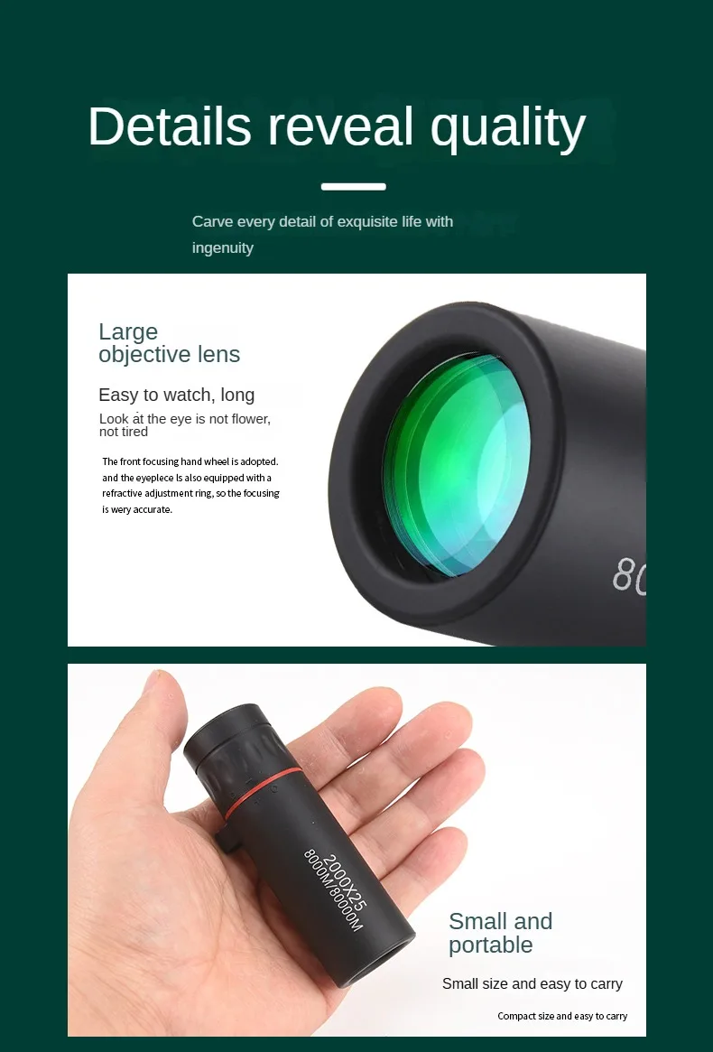 Telescópio Monóculo Portátil, Caça, olhar Aviões e ver coisas a longa Distancia