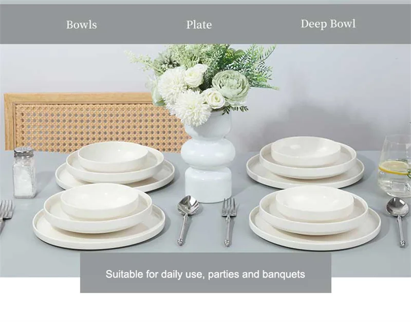 Conjuntos de Louça de Porcelana Peças Tigelas e Pratos Brancos Conjunto de Pratos Resistente a Riscos Tigela de Cerâmica