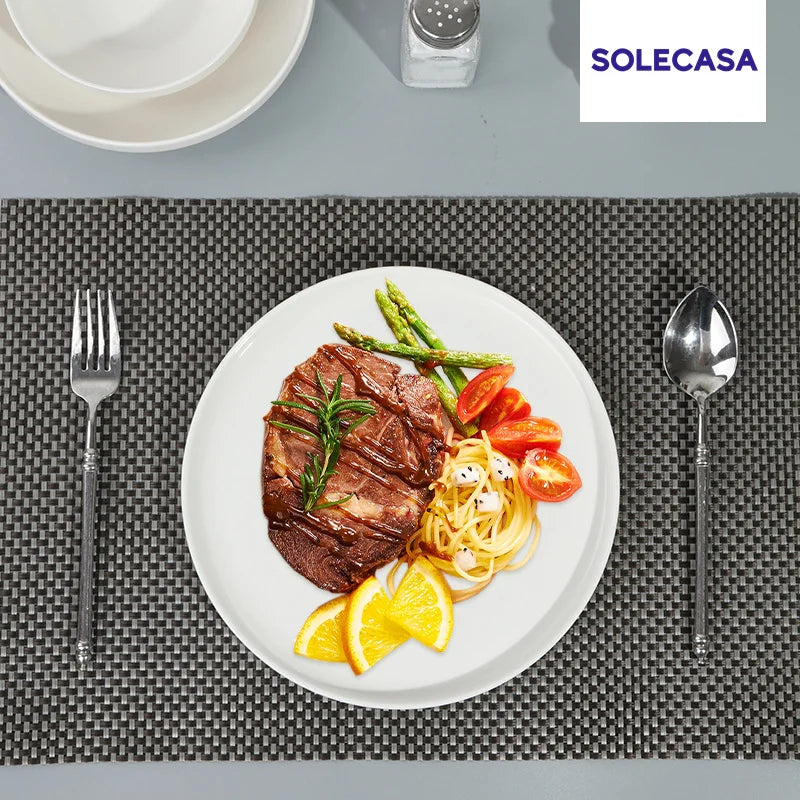 SEGURANÇA E DURABILIDADE DE NÍVEL PROFISSIONAL DE CHEF - Feito de porcelana premium de alta temperatura (2340°F) com esmalte seguro para alimentos, nossos conjuntos de pratos e tigelas. Desfrute de refeições com qualidade de restaurante em casa com confiança, com resistência a lascas que suporta o uso diário por anos.