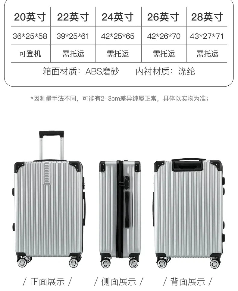 Mala de Rodinhas 20 24 26 28" Maleta de Viagem com Rodas, Cadeado de Combinação, Bagagem de Mão